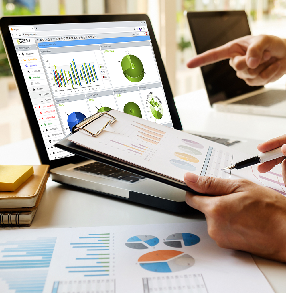GeQO ERP rende semplice ed intuitiva l'amministrazione aziendale e la gestione dei vari documenti, integrando strumenti di controllo di gestione e business intelligence per supportare il monitoraggio e la pianificazione strategica del business.